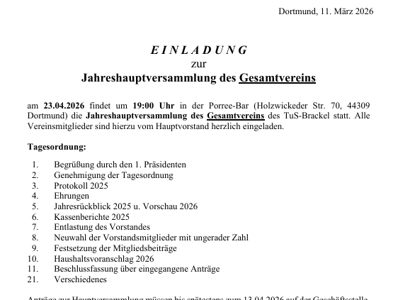 Einladung zur Jahreshauptversammlung am 23.04.2026